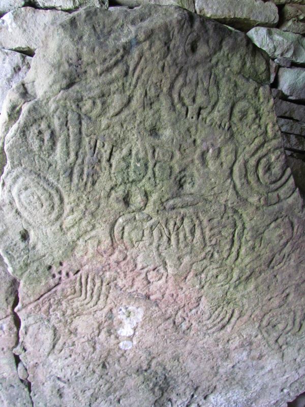It is believed the cluster of 6 dots represents the Pleiades and interestingly it is intersected by a straight line like a pointer. Although there is no information whether the detail is natural or was intentionally carved it looks as if it was intended to beckon one to look further from the star cluster to find something important. Indeed, the cluster is surrounded by 3 prominent spirals placed in a triangular layout. The triple spiral is an essential symbol found at many ancient Irish mounds and appears in Christian art too. Wayne and I suspect most of the spiral symbols stood for stars or suns as in Native American rock art as well and the Irish tradition - like many cultures around the world - has possibly preserved the memory of 3 sunlike stars in the area close to Pleiades as the home of the 'gods' and humanity.